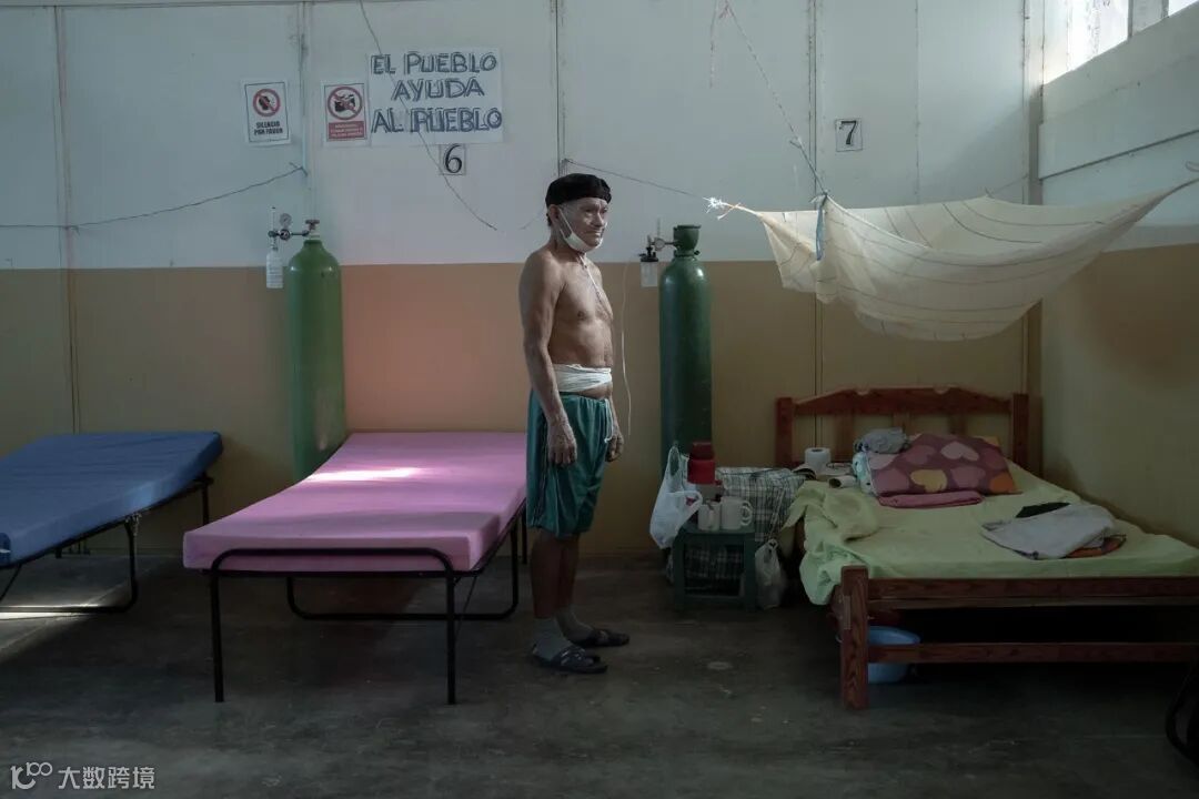 Elida Garcia在San Francisco土著社区的健康中心内等待。希皮博-科尼博人对政府没有送来医疗用品感到遗憾,他们被迫到普兰尔帕市寻求医疗援助。在该社区,至少90%的希皮博-科尼博人感染了新冠病毒。