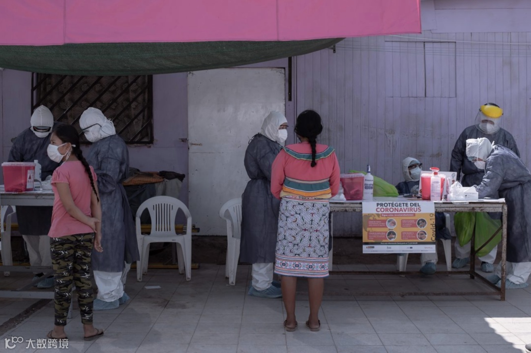 秘鲁卫生部派出一个护士小组到坎塔加洛社区进行1000人次的快速检测,评估感染人数:发现70%的人感染了病毒。