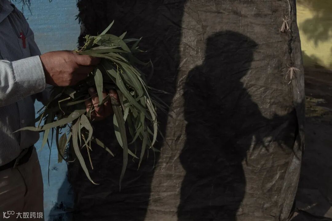 一名希皮博-科尼博男子采集桉树叶,作为预防新冠症状的保护措施。在日落时分,社区组织起来用桉树叶子清洗自己,而其他人则喜欢烧掉桉树叶子,所散发出来的气味可以净化环境。