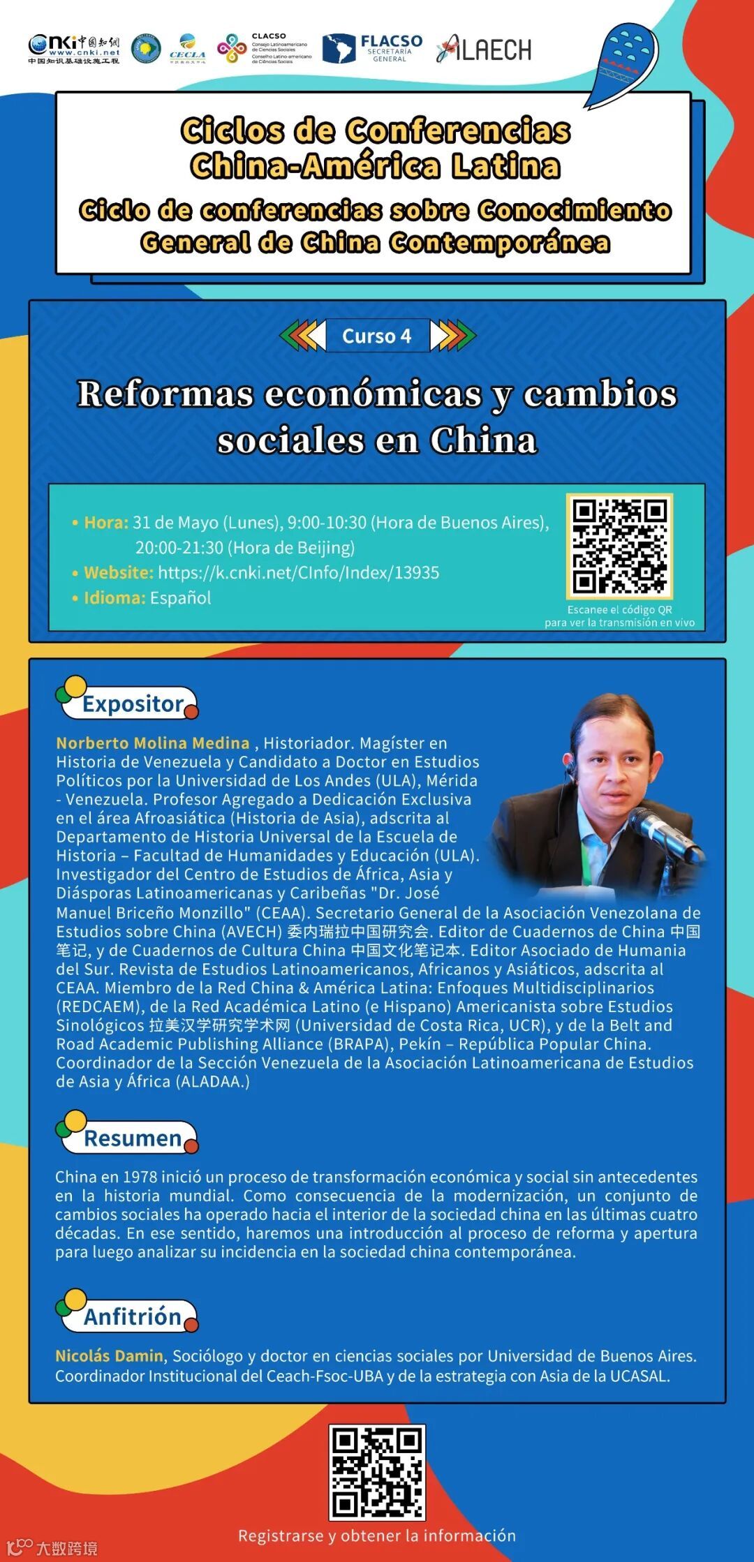 “中拉大讲堂”包括“当代拉丁美洲”和“当代中国”两个通识系列讲座,每个通识系列十五讲,将由来自中国、墨西哥、阿根廷、巴西、智利、美国、西班牙、委内瑞拉、哥伦比亚、秘鲁、厄瓜多尔等国的知名学者主讲,议题涉及中拉经济、外交、气候政策、知识创新等。
