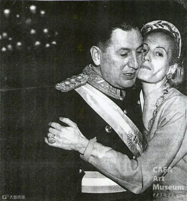 图上的这个人男的是庇隆,女的是庇隆夫人,后来这个电影是美国大歌星麦当娜演的。演的就是边上的这位女性。