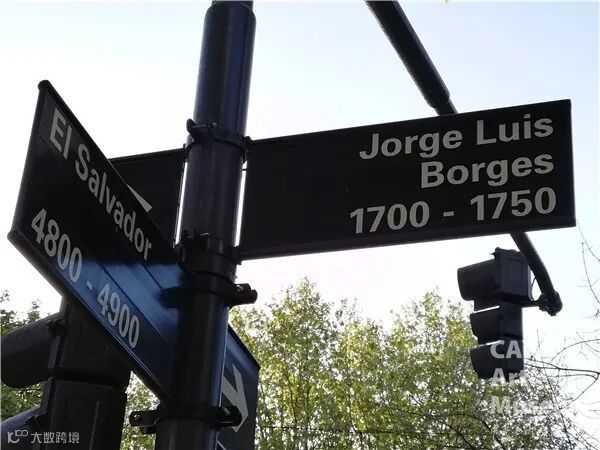 这次展览的雷安德罗·埃利希的作品,埃利希现在很国际化,在欧洲、在北美……全世界各地做展览。我们意识到,他身上的拉美因素是通过他跟博尔赫斯之间的关系。后面我们就要看到博尔赫斯,在布宜诺斯艾利斯有一个巴洛莫区,巴洛莫区是全世界最有名的区,就是博尔赫斯弄出来的。如果中国有一个作家把朝阳区写成全世界都有名,把望京地区写的全世界赫赫有名也了不得。现在博尔赫斯去世了,他们拿博尔赫斯做街道的名字,上面看到的是博尔赫斯,博尔赫斯大街。