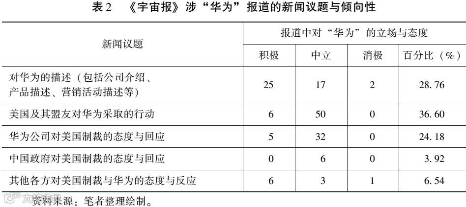 通过对全部报道样本进行内容分析可以发现,《宇宙报》在有关“华为”的报道中,新闻议题设置相对固定,引语使用上注意平衡多方意见,总体价值倾向以中立为主,对华为在科技领域取得的成就和承担的角色多持积极肯定态度。