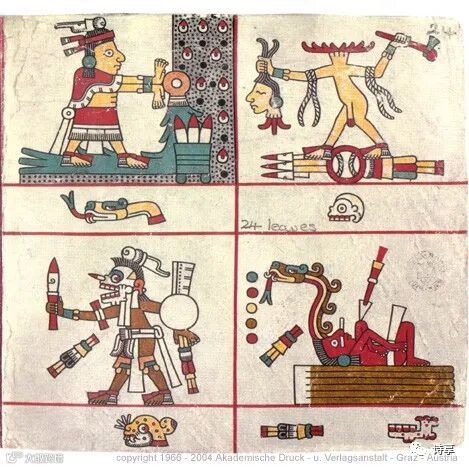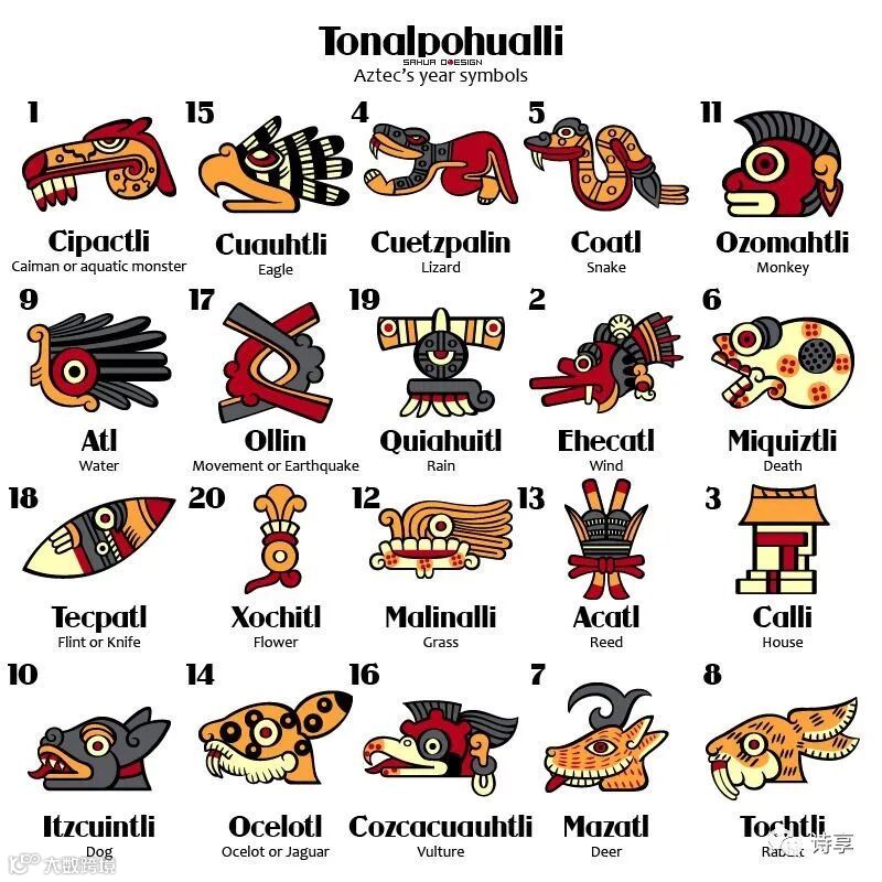 《新西班牙诸物志》中也提到了关于“通奸者”的命运。该书第四卷主要讲述了阿兹特克民族的星相学及占卜学。阿兹特克人的tonalpohualli历法共260天,由1-13十三个数字和20个符号按顺序组合而成,符号顺序以及组合方式请看以下两张图片: