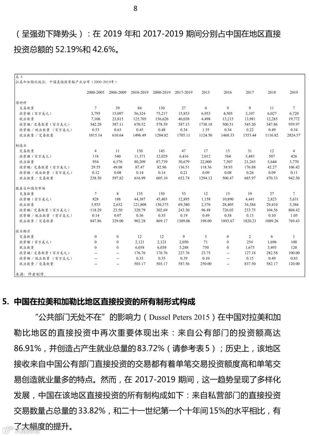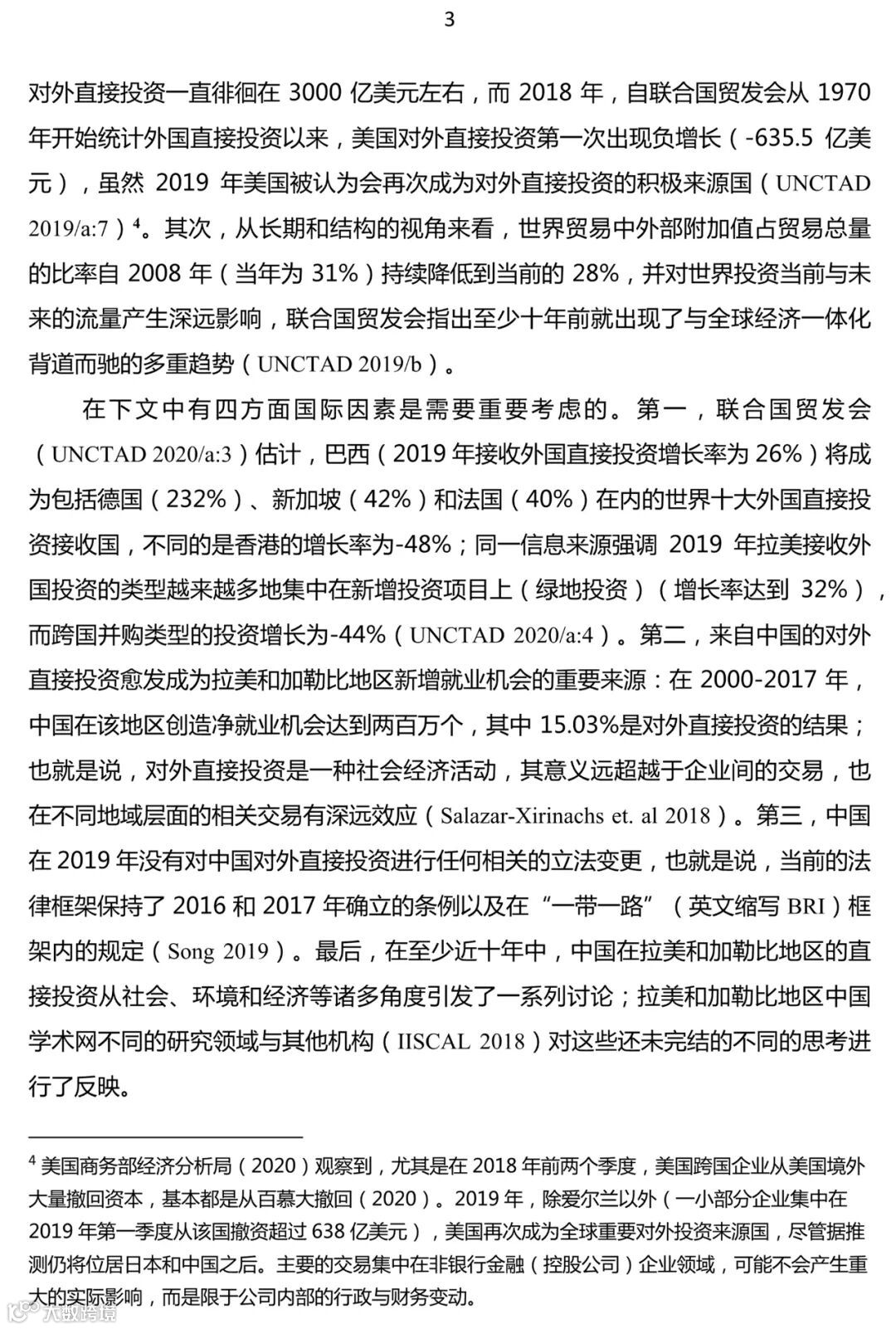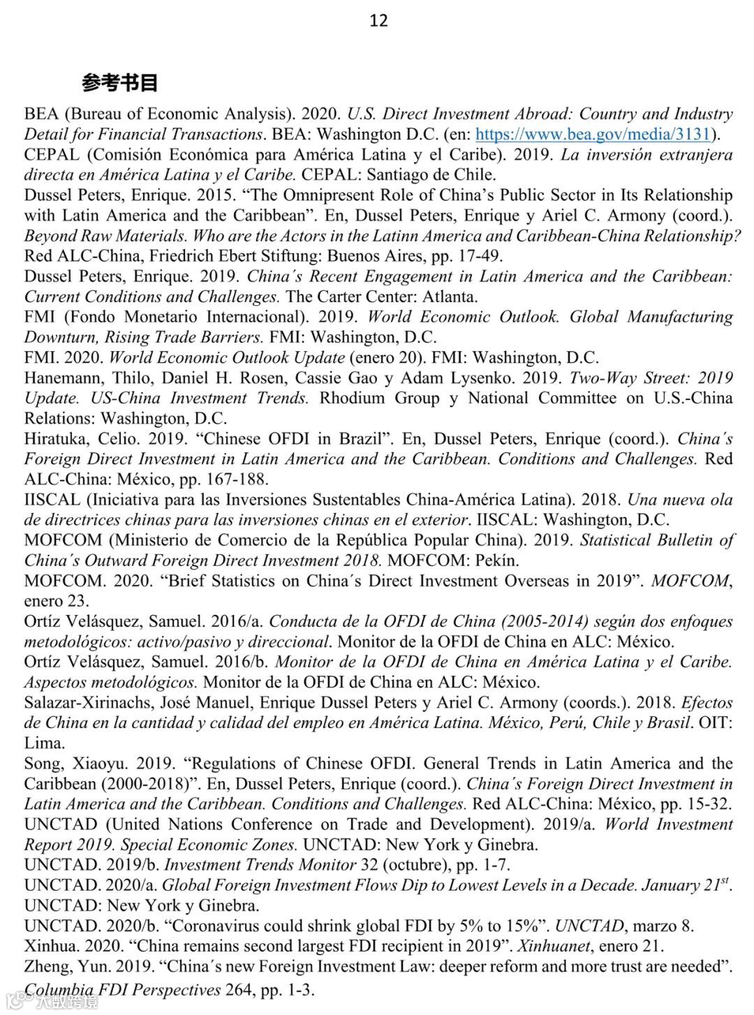 由拉丁美洲和加勒比地区中国学术网(Red ALC-China)编制并向公众开放的《2020年中国在拉丁美洲和加勒比地区直接投资报告》(下称《报告》)近日出炉。中拉智讯特转载以飨读者。《报告》简要介绍了2000~2019年间从中国流向拉丁美洲和加勒比地区(下称拉美)直接投资的主要结果,并对近年来和2019年的情况进行重点分析,目的是通过对投资信息的细致核准,整合历年中国在拉美的直接投资情况。除导言外,本报告共分六部分:第一部分探讨中国在拉美直接投资的全球大背景,第二部分介绍方法论差异和本报告所获取的总体结果,余下部分按年度、投资目的国、交易类型、产业和主要中国企业分别介绍投资结果。
