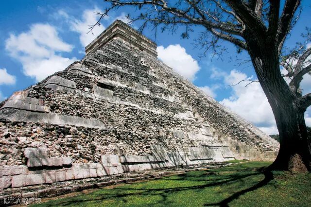 库库尔坎金字塔高30米,底面的边长为55.5米,四面各有91级台阶,加上最上层的平台,正好是一年的天数。