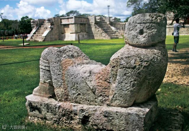 活祭是玛雅人最悲壮的祭祀活动,主祭用石刀剖开活人的胸膛,并迅速取出心脏,放到神使恰克摩尔(石雕像)手中的圆盘中,献给太阳神。