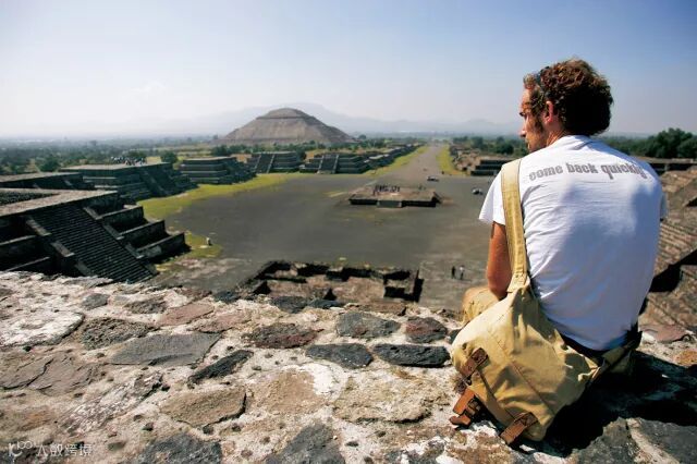 一位游客在月亮金字塔上眺望特奥蒂瓦坎古城遗迹。前方的太阳金字塔建于公元2世纪,是印第安人阿兹特克文化的重要组成部分。