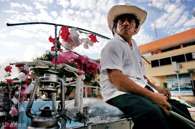 载客游览市容的马车和老人。自16世纪开始,梅里达被征服者改建为极富西班牙殖民地色彩的城市。