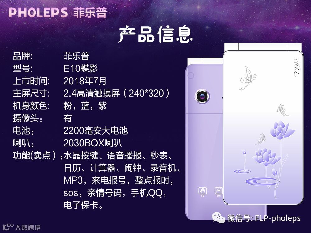 导读:夏日来袭,菲乐普E10蝶影,翻盖带手写2.4屏女翻,2200毫安电池,水晶按键,2030box喇叭,自动对时
