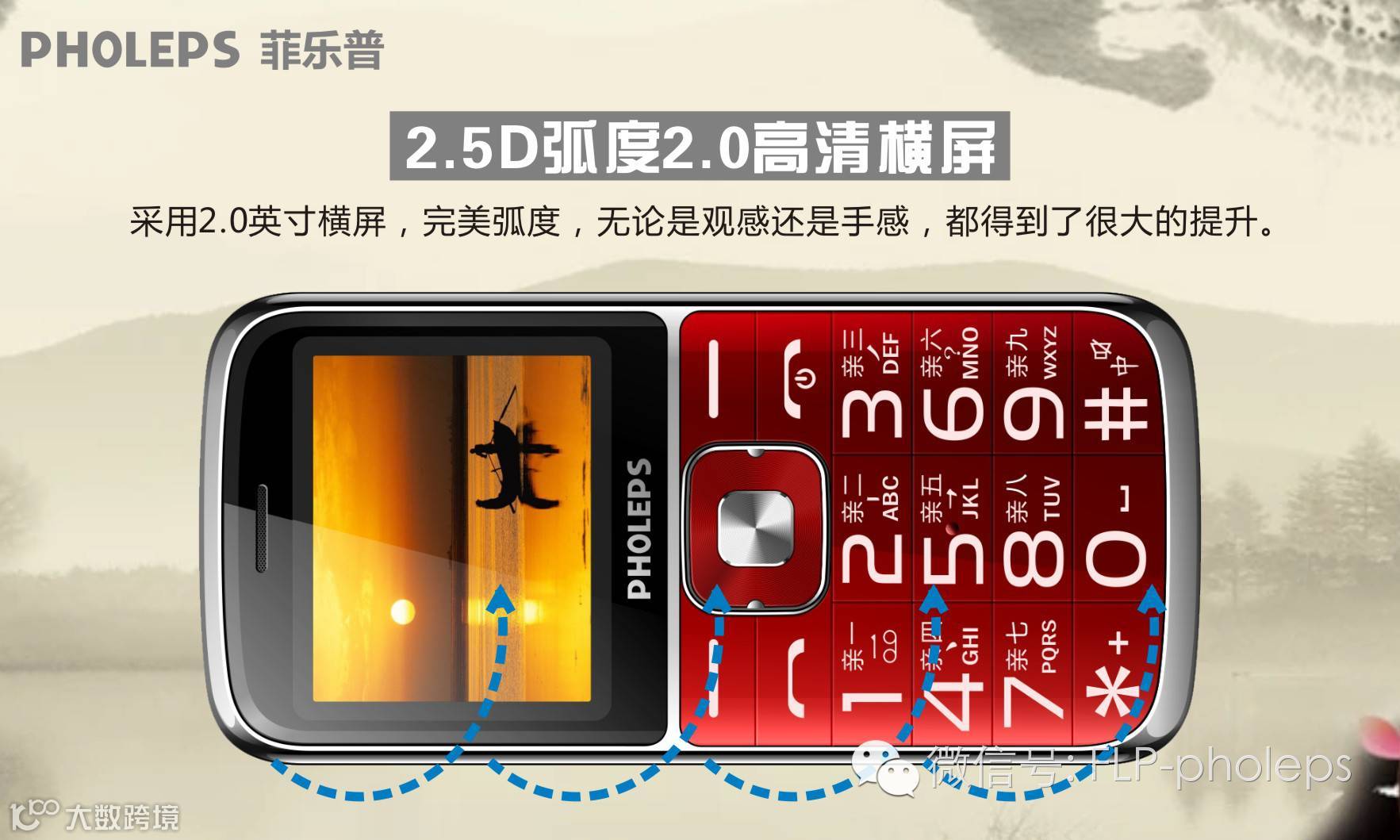 导读:2.0寸弧面屏,9个亲情号码,超大按键,1800毫安大电池,一键手电筒。