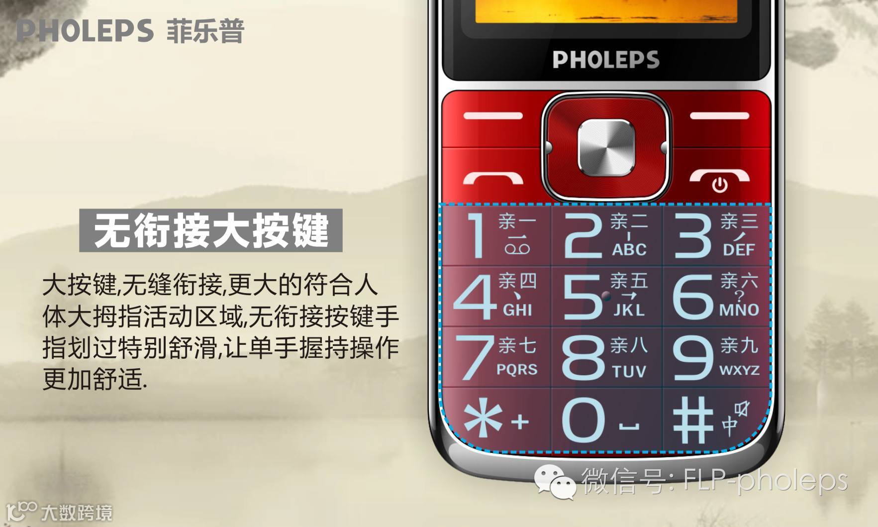 2.0寸弧面屏,9个亲情号码,无缝超大按键,1800毫安大电池,一键手电筒。