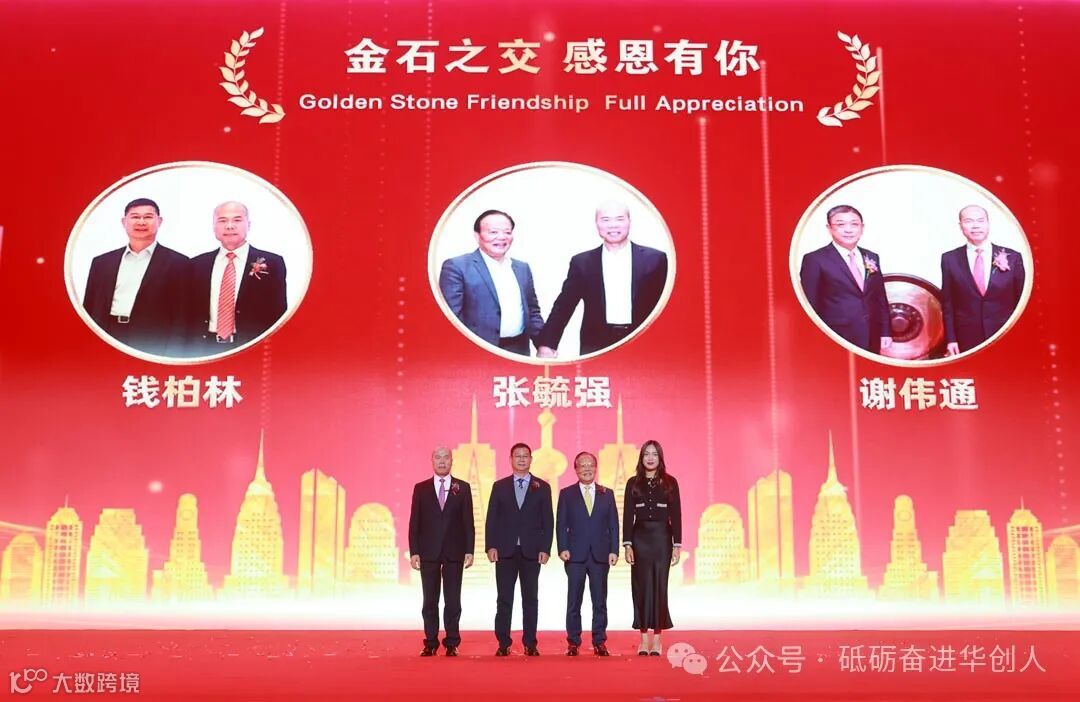 在“华友创业三十周年金石之交 感恩有你”环节,陈雪华董事长向中汇(浙江)税务师事务所有限公司财务总监钱柏林、大山集团董事长谢伟通、振石控股集团有限公司董事局主席张毓强赠牌,谢伟通进行视频致辞,共同回顾和见证这段历久弥坚的深情厚谊。