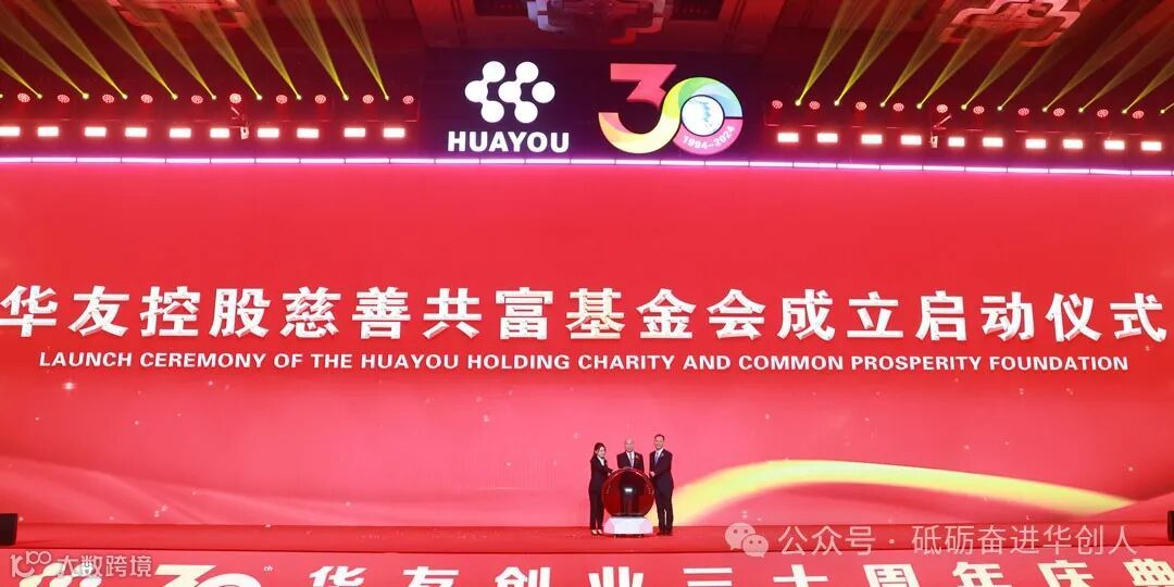 庆典最后,华友控股慈善共富基金会的正式启动。华友控股董事长陈雪华,副董事长陈晓琳,总裁陈红良,共同上台,共触希望之光,按下启动球,标志着爱与责任的传递。