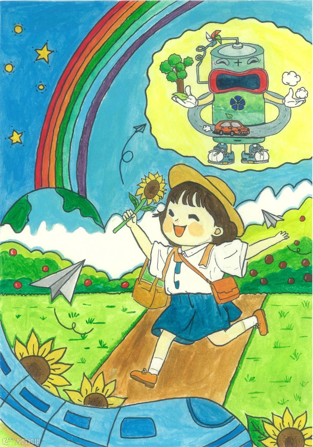 △《童梦箔彩,绿能新篇》(绘画):
