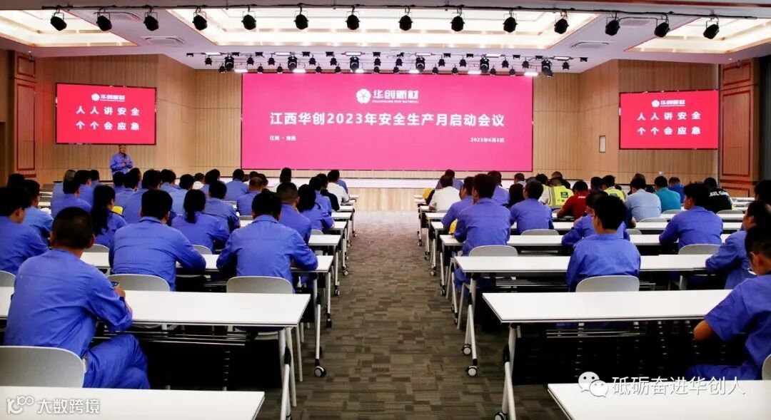 “我宣誓:从我做起,时刻关注安全;提高安全知识水平,强化安全红线意识......”6月3日,江西华创2023年“安全生产月”启动会议正式举行,华创新材副总裁兼江西华创总经理操声跃,向全员发出安全生产倡议,并带领公司各部门相关负责人、员工代表、参建单位代表做集体宣誓。