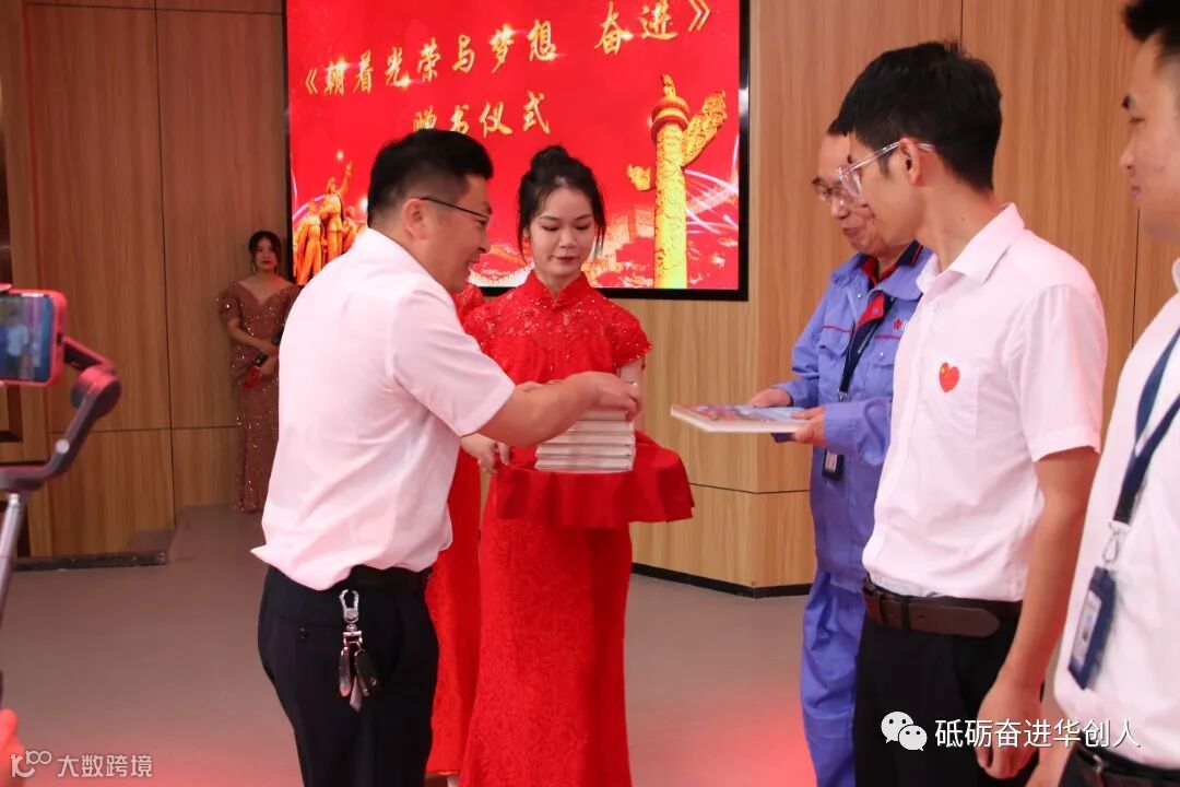 颁奖结束后,还开展了隆重的《朝着光荣与梦想 奋进》赠书仪式,操声跃、黄国和、肖炳瑞、徐文斌分别为江西华创、衢州华创、上饶华创、工程中心各部门负责人授书。