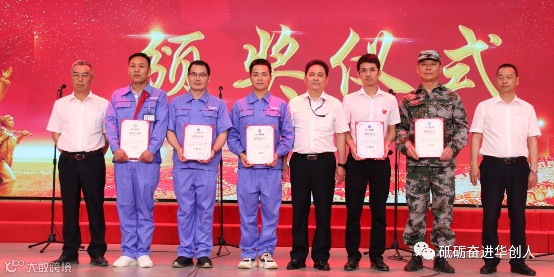 各队表演结束后,评委从主题、服装、队形、演唱、创意5个维度对各队进行综合评分。最终,由品保一队演唱的《歌唱祖国》荣膺本次比赛一等奖;办公室、企管中心、人资部、行政部联队带来的《我爱你中国》,以及生产二厂队的《我的中国心》成功摘得二等奖;三等奖花落财务部、供应部队演唱的《我和我的祖国》,及上饶基地队演唱的《小白杨》。黄国和、肖炳瑞、徐文斌分别为一、二、三等奖队伍颁发荣誉证书。