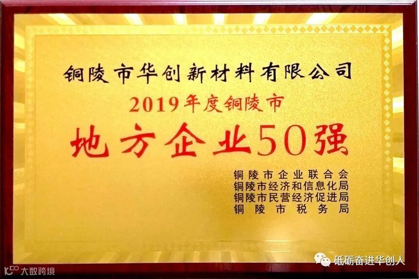 【荣誉】喜讯!华创荣获“2019年度铜陵市地方企业50强”、“2020铜陵市民营企业50强”称号