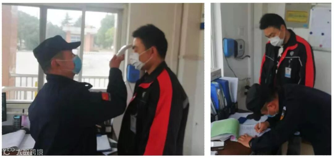 2月2日下午,一辆快递车辆停在公司大门外,欲进厂送货。当班保卫人员朱永飞看到后走出门卫室,“请进来做个登记、测下体温”。待快递人员进入门卫后,他用额温计对其进行检测,36.4℃。同时,详细询问该快递人员是否从湖北归来或与湖北籍人员有过接触、近几日身体是否异常等,得到否定答复并在登记簿上做详细记录后,才对快递车辆进行了放行。