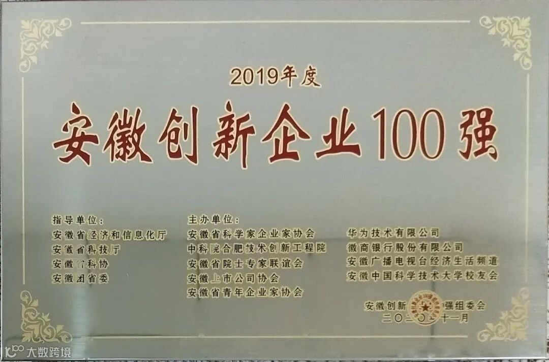 “安徽创新企业100强”是在安徽境内注册的所有创新型企业中评选出来的拥有自主知识产权、整体技术水平达到国内同行领先、具有自主品牌和较强行业引领性企业的奖项。