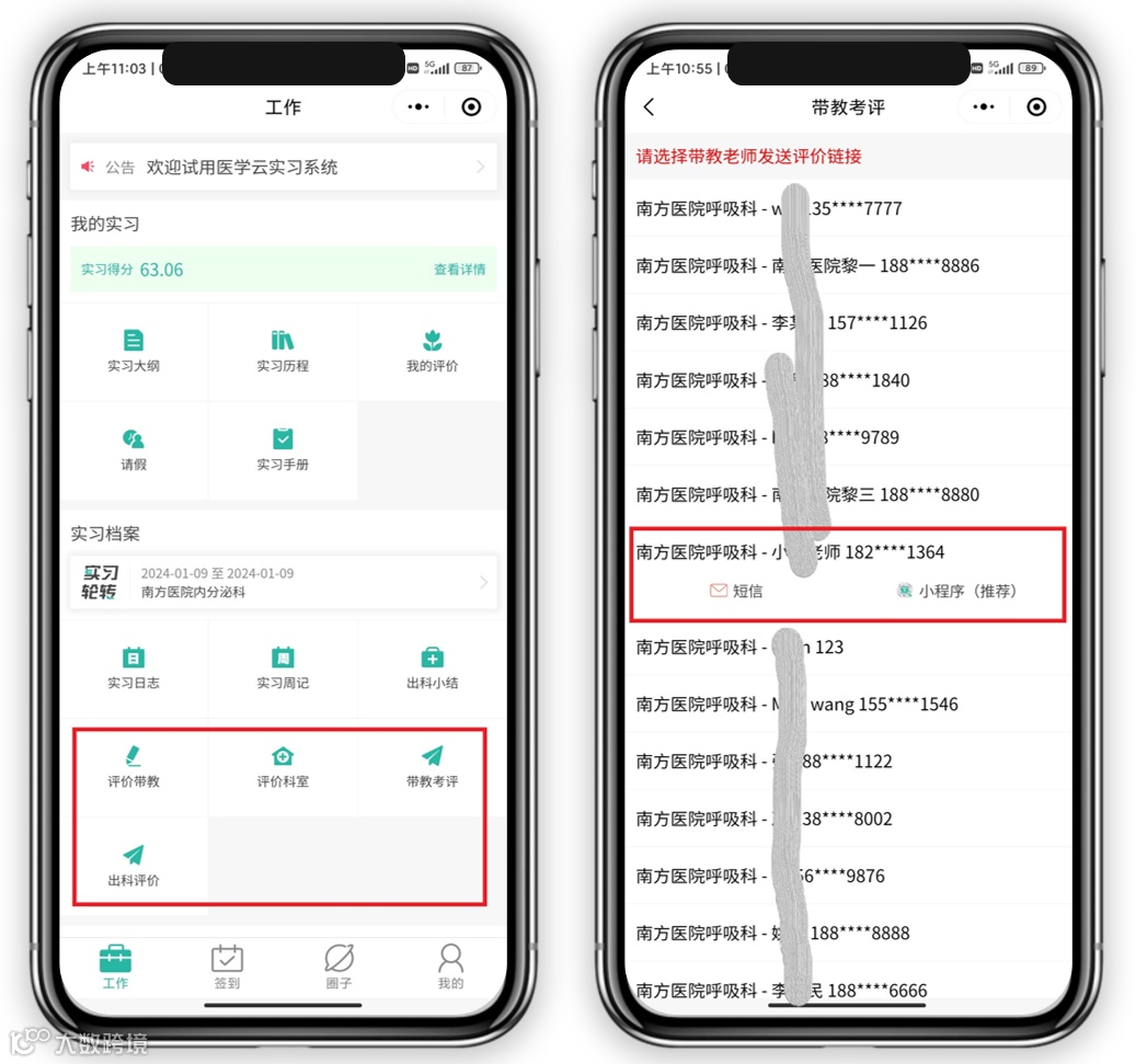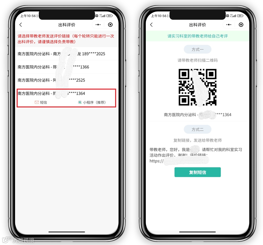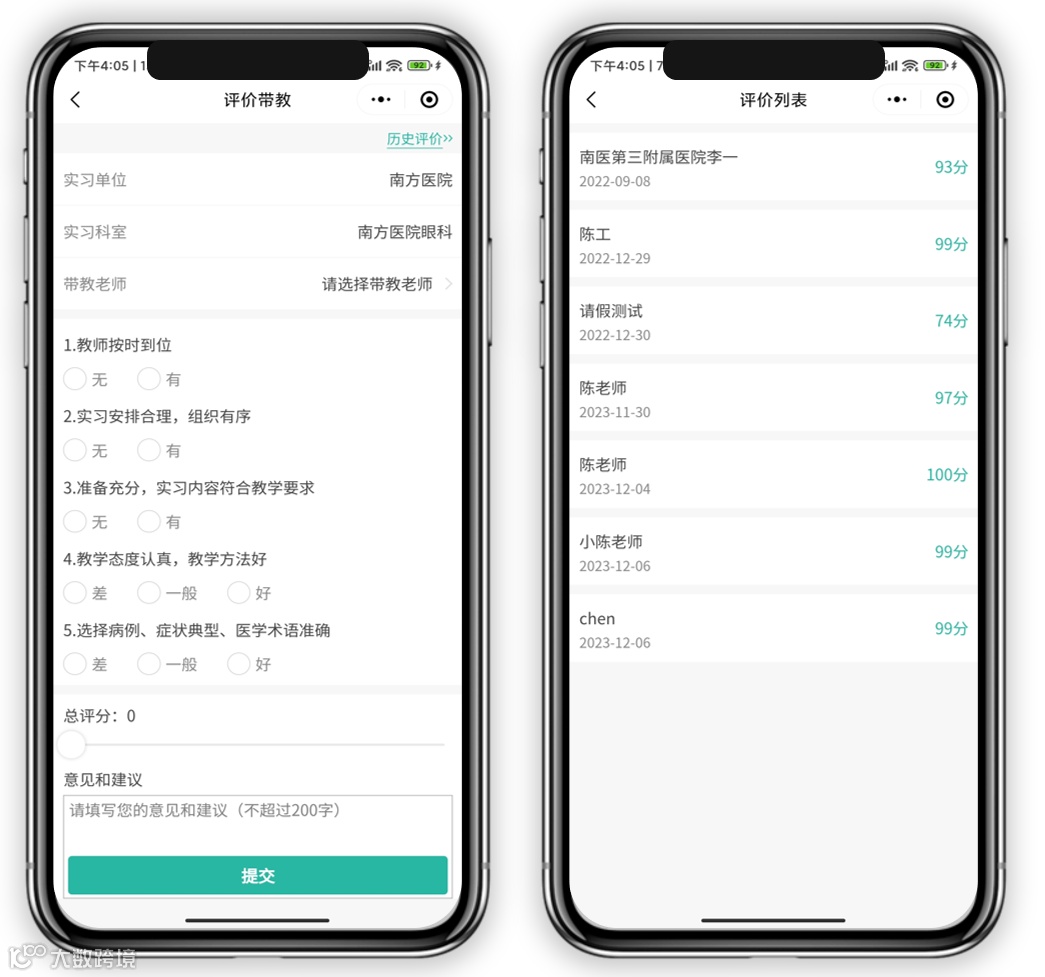 师生互评环节包括:学生评价带教、学生评价科室、带教评价学生、带教对学生出科评价