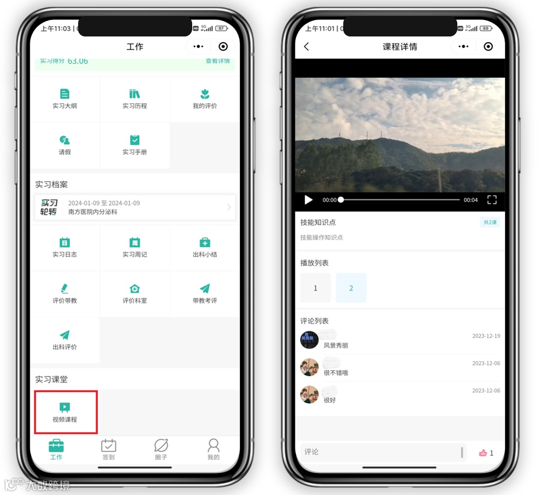 视频课堂由学校老师上传教学视频,实习生自行安排时间学习。
