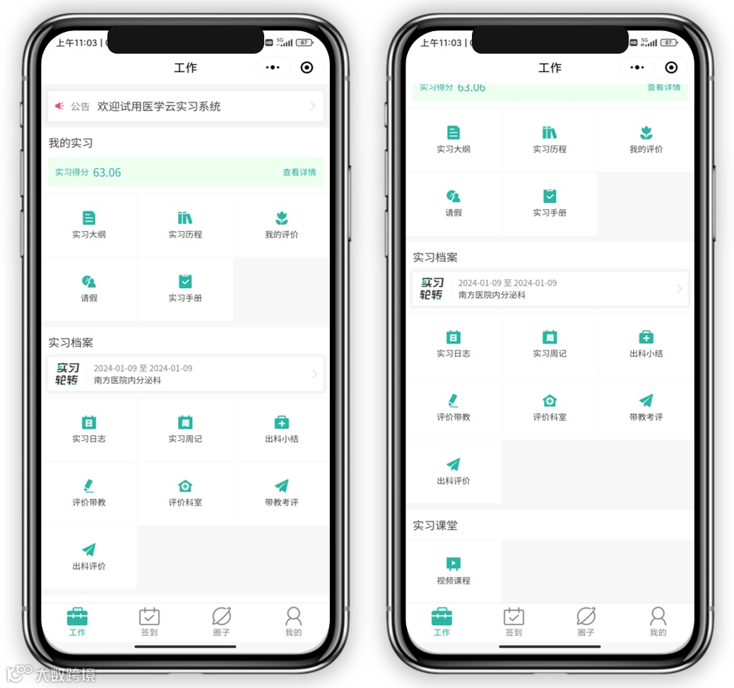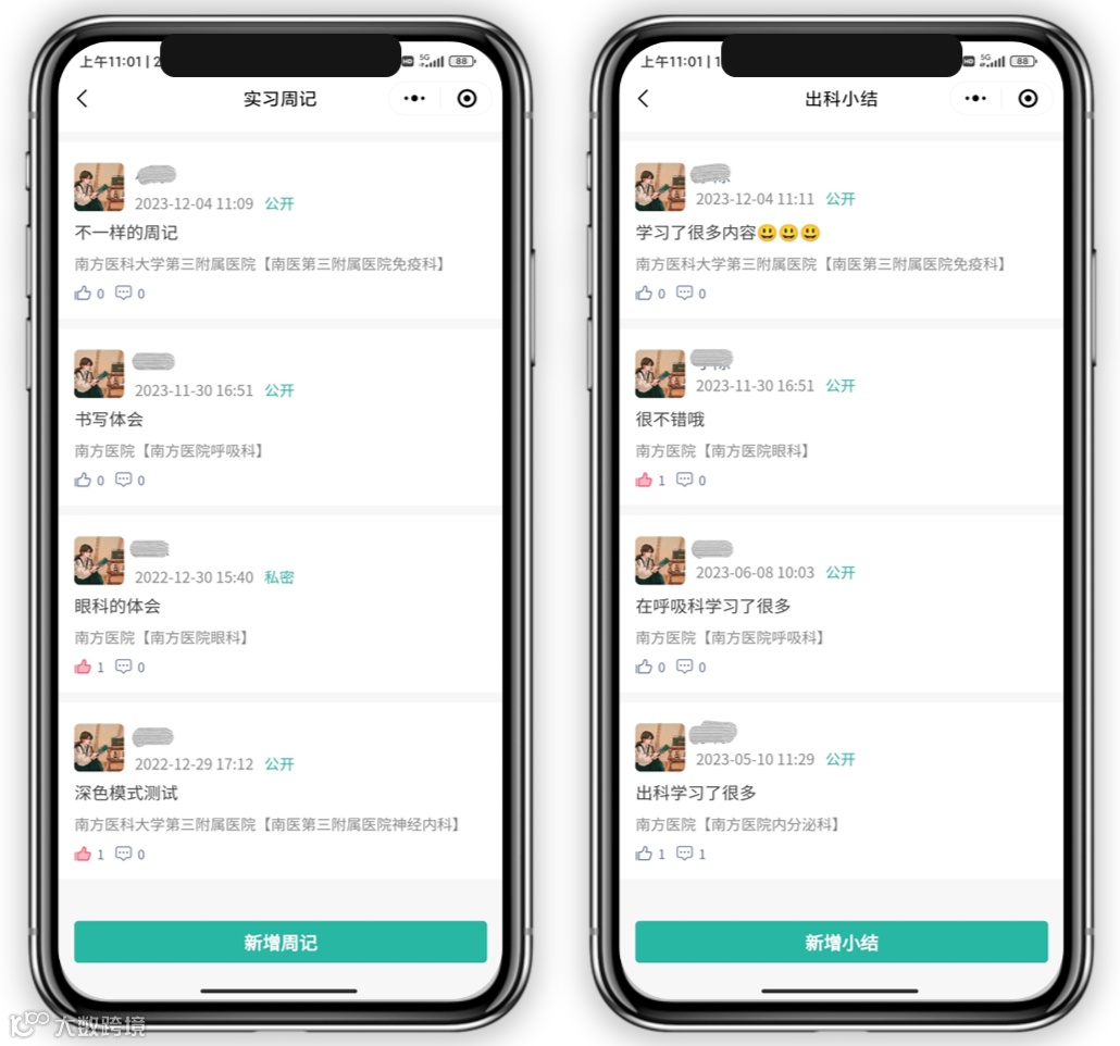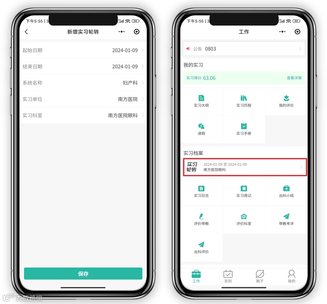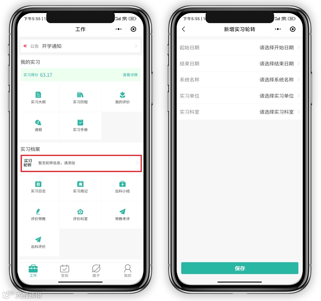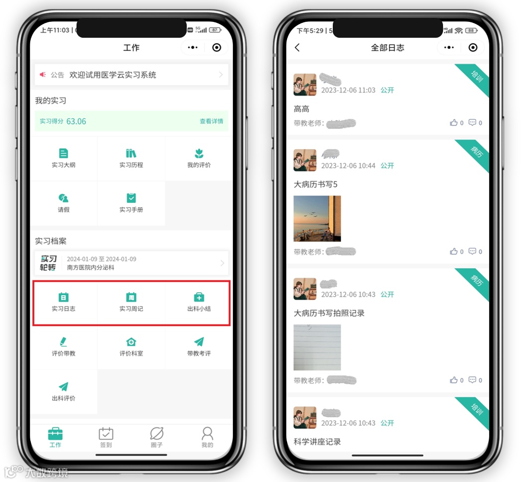 实习轮转开始,实习生可自由填报实习数据,包括:日志、周记、出科小结