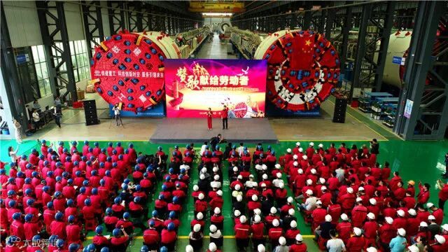 在铁建重工党委副书记、职工董事、工会主席贺勇军的陪同下参观全球最大高端地下工程装备制造基地——铁建重工长沙第二产业园。