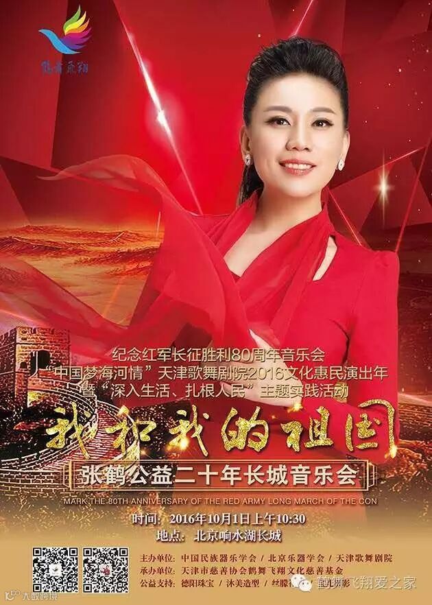 张鹤老师始终记得感恩国家培养,作为公众人物她也希望通过自己的努力影响更多的人,为早日实现“中国梦”不懈奋斗!《我和我的祖国》——张鹤公益二十年长城音乐会在北京响水湖长城圆满完成,但这不是终点,而是一个新的起点,伴着张鹤优美嘹亮的歌声,为爱继续走下去。
