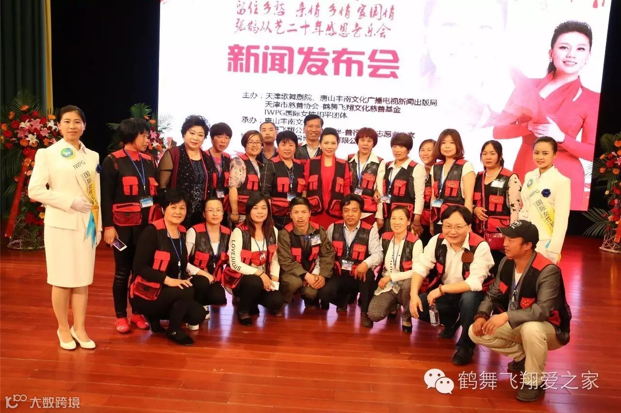 2016年5月16日下午,京津冀三地艺术家共聚唐山市丰南区丰南大剧院,参加了“留住乡愁、亲情、乡情、家国情”—— 张鹤从艺二十年感恩音乐会新闻发布会。会上宣布,张鹤从艺二十年感恩音乐会将于今年6月19日在张鹤的家乡河北唐山正式举办,并由天津歌舞剧院、唐山丰南文化广播电视新闻出版局、天津市慈善协会——鹤舞飞翔文化慈善基金、IWPG国际女性和平团体共同主办,唐山丰南文化馆、鹤舞飞翔公益合作伙伴——善行唐山志愿者之家承办,唐山荣盛房地产开发有限公司协办。