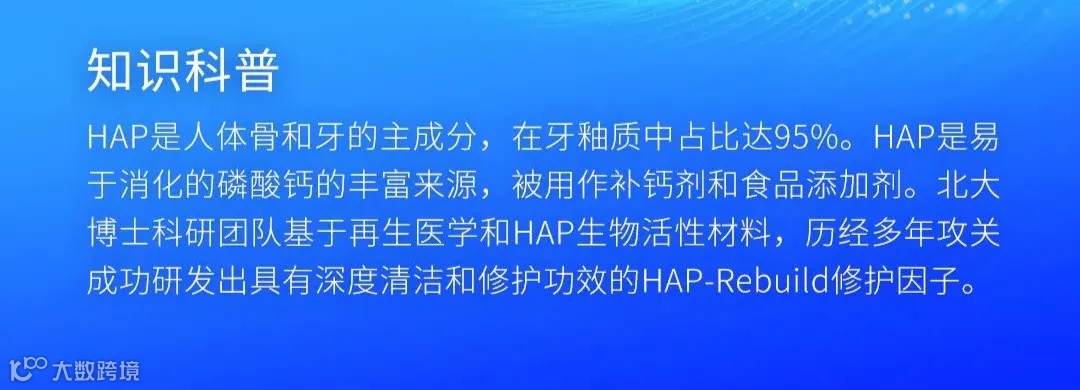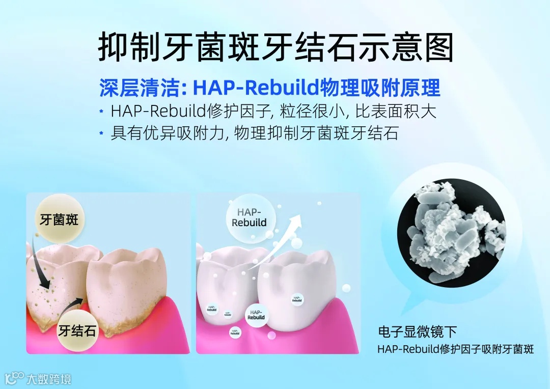 HAP-Rebuild修护因子,就是能够抑制牙菌斑牙结石并能修护受损牙釉质的特种HAP粒子,纯度超过99%。