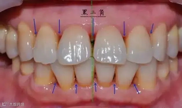 牙龈萎缩,尤其是前牙,会直接影响美观。说话或大笑时能看到牙齿之间的缝隙,俗称“黑三角”。说话时还会漏风。