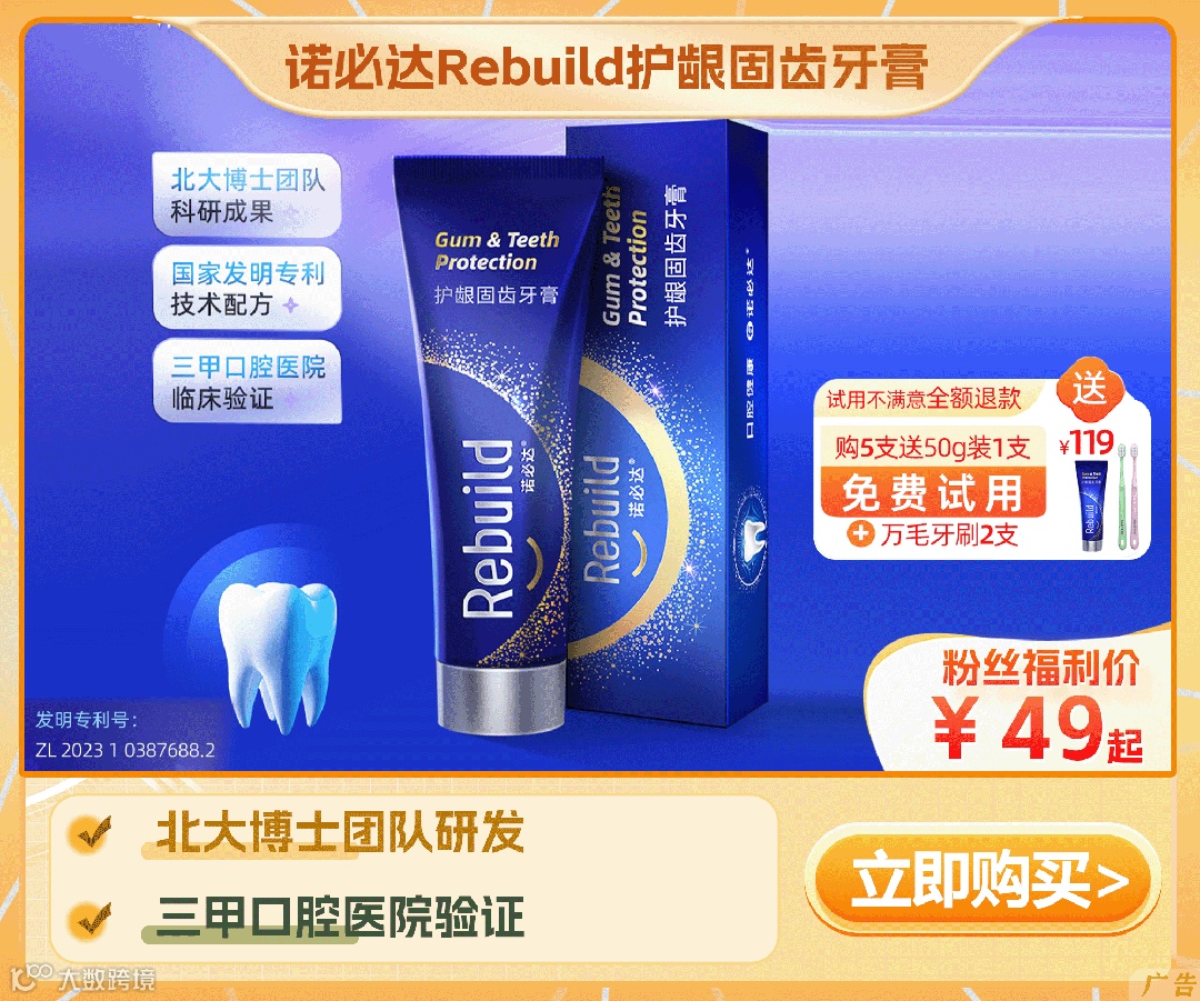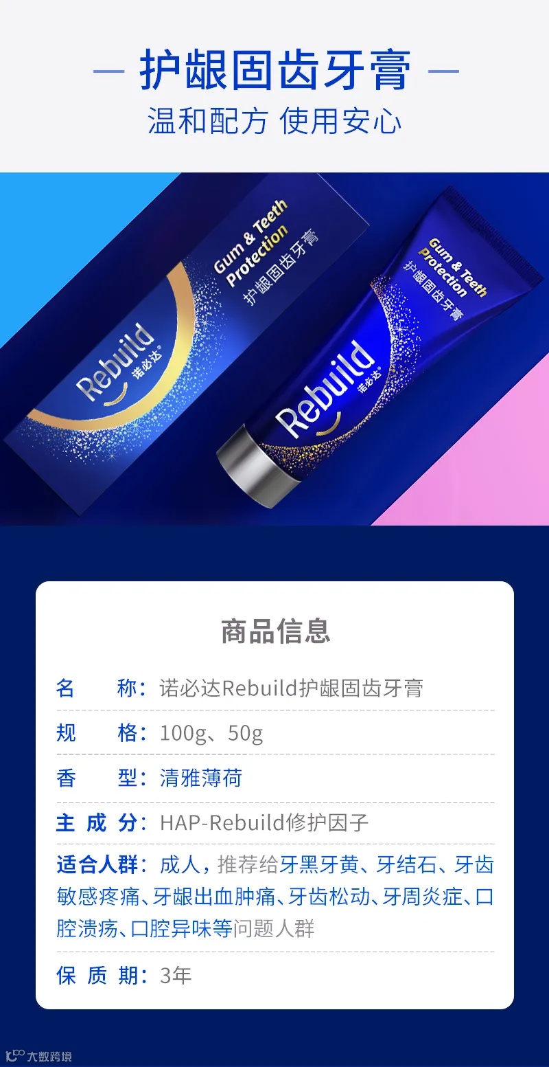 由北大博士团队研发的功效型牙膏——诺必达Rebuild护龈固齿牙膏,国家发明专利配方,三甲口腔医院临床验证安全有效,能够抑制牙菌斑牙结石,改善牙龈出血,有效减轻牙龈问题,改善牙龈健康状况,帮助解决了很多朋友的口腔烦恼。
