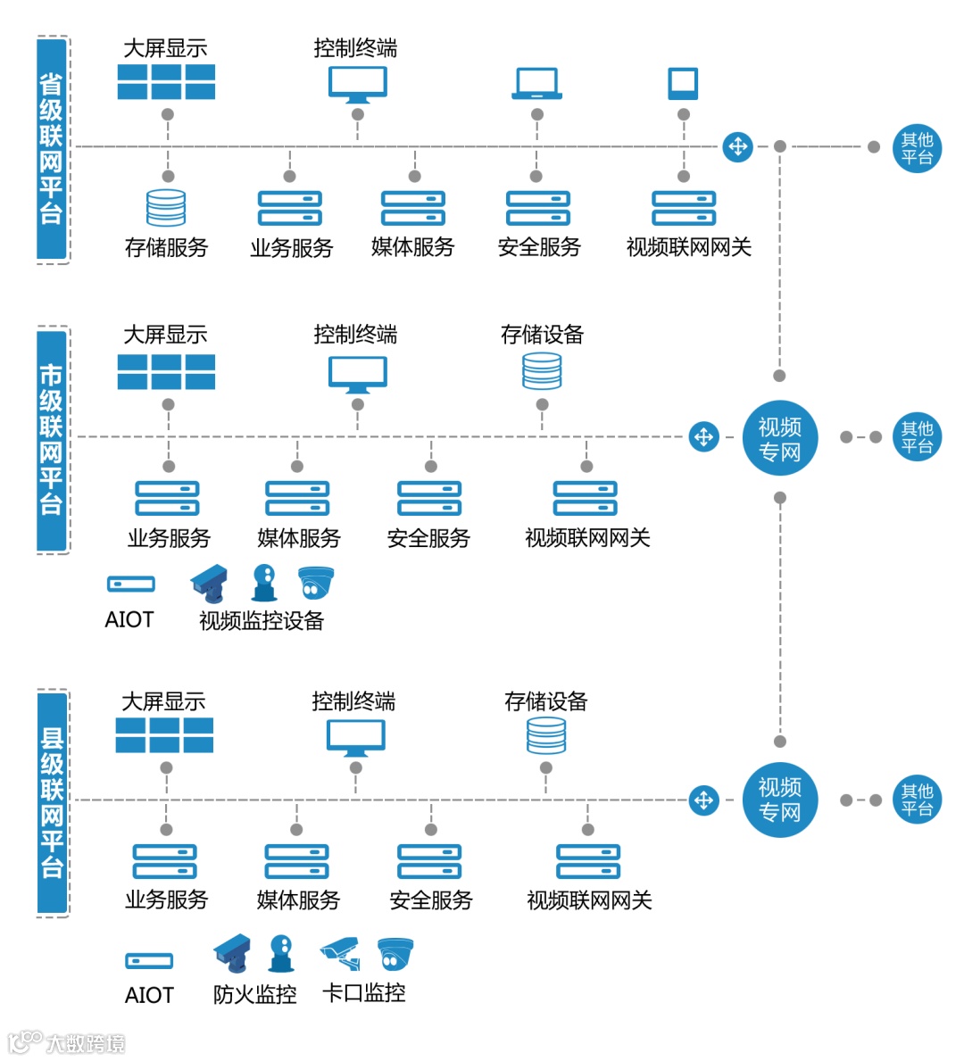 视频联网与应用平台可实现省、市州、区县三级应用架构