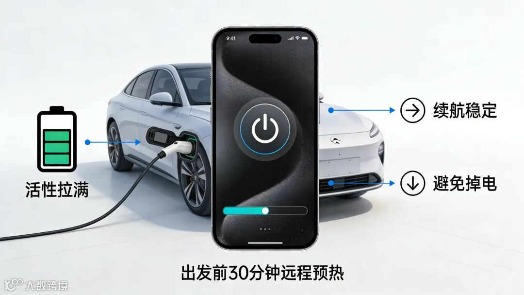 出发前30分钟,建议通过手机APP远程启动电池预热功能,预热后的电池活性可快速拉满,不仅能让续航更稳定实在,还能有效避免低温环境下车辆突然掉电的情况。