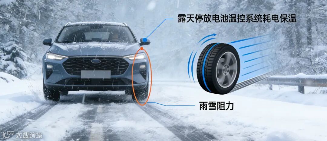 雨雪天路面湿滑,车辆行驶阻力会明显增加;同时,为了保证行车安全,频繁刹车、低速蠕行的操作会降低电机工作效率,进一步提升耗电量。此外,若车辆露天停放,电池温控系统会主动启动耗电保温模式,即便车辆静置一夜,也会出现明显的电量损耗。
