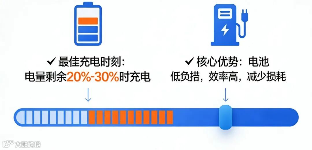 ✅ 最佳充电时机:电量剩余20%-30%时充电;