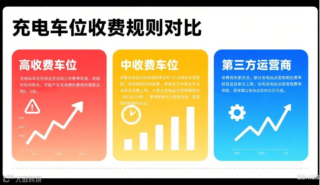 第三方运营商:收费规则更灵活,部分充电站点宽限期后费率较低且设单次上限,也有充电站点按常规费率收取,具体需以各站点实时公示为准。