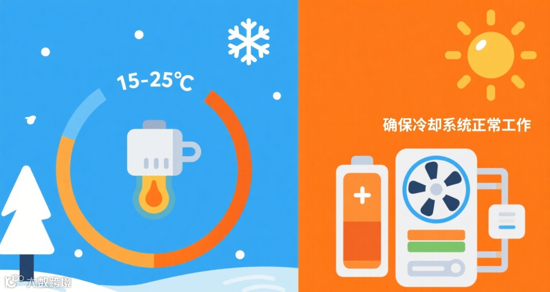 冬夏要注意电池温度,冬天把电池加热到 15-25℃,夏天确保冷却系统正常工作。