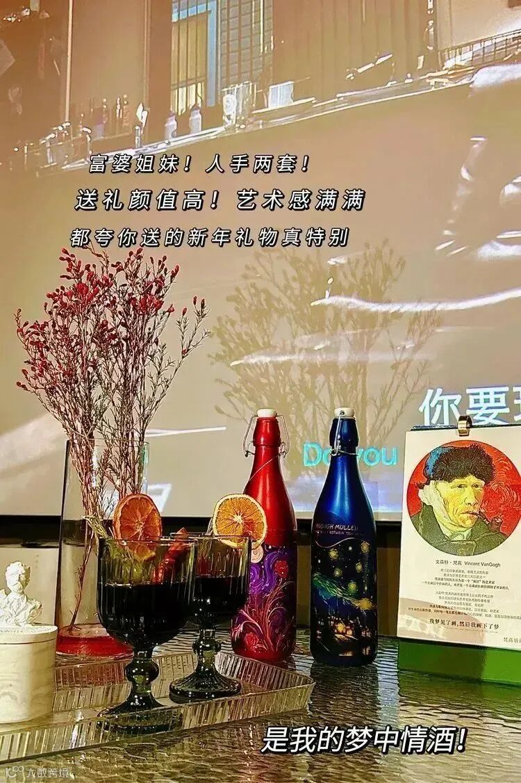 瓶身设计是梵高酒庄新年限定❤️红💙蓝配色