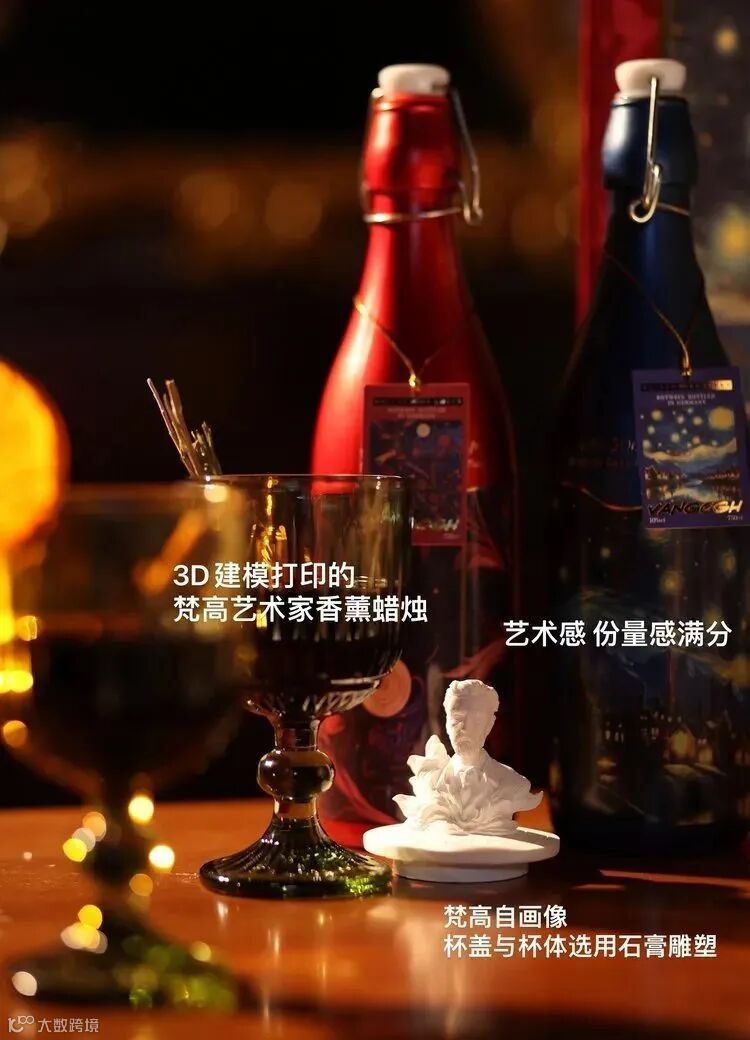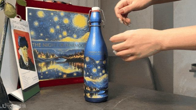 把梵高传世名作《星月夜》搬到了酒瓶上