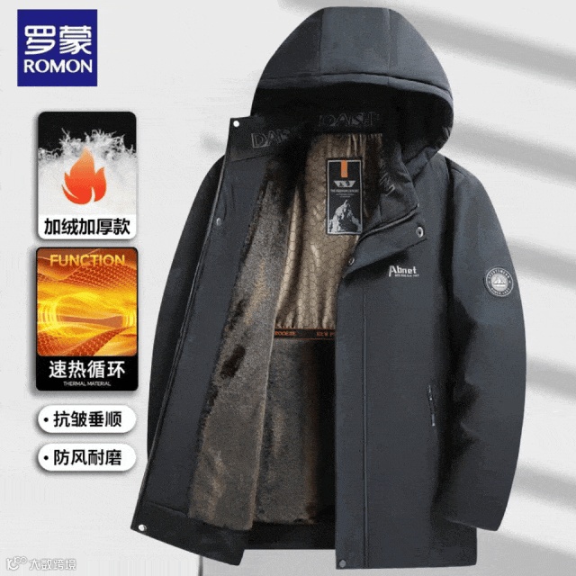 【罗蒙品牌石墨烯内里男士冬季加厚防风棉服】
