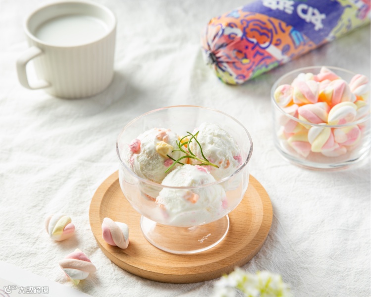 一粒一粒的颗粒棉花糖,搭配细腻丝滑的冰激凌,颜值100分!