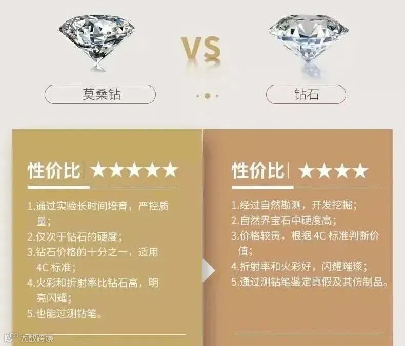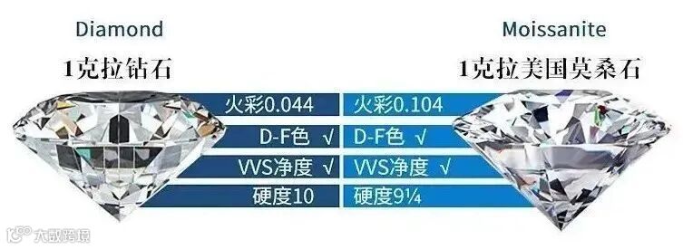 ▲莫桑钻和普通钻石对比