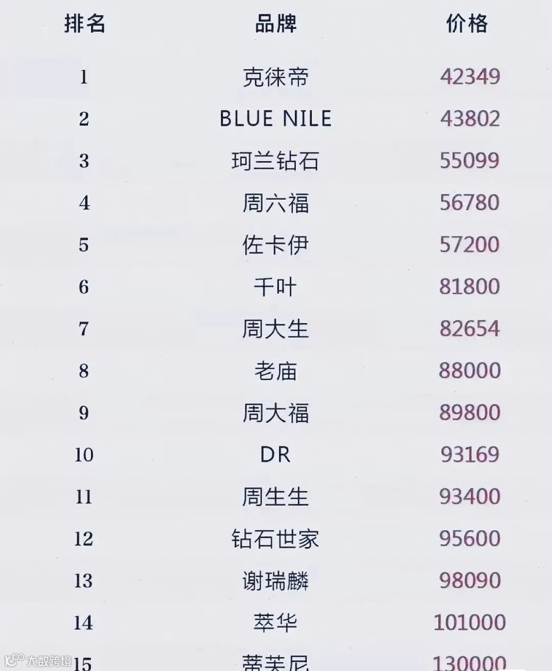 ▲珠宝价格倒序排名