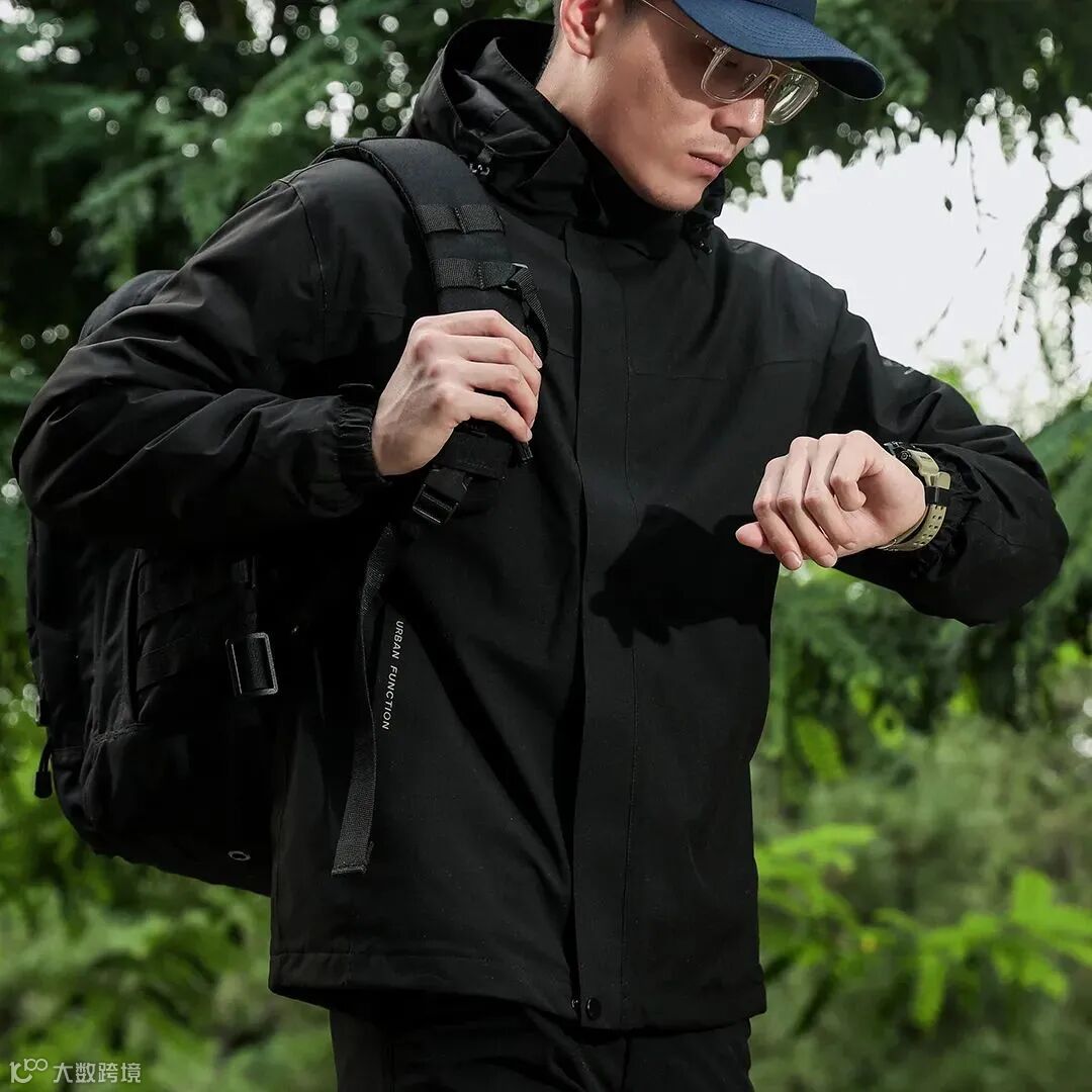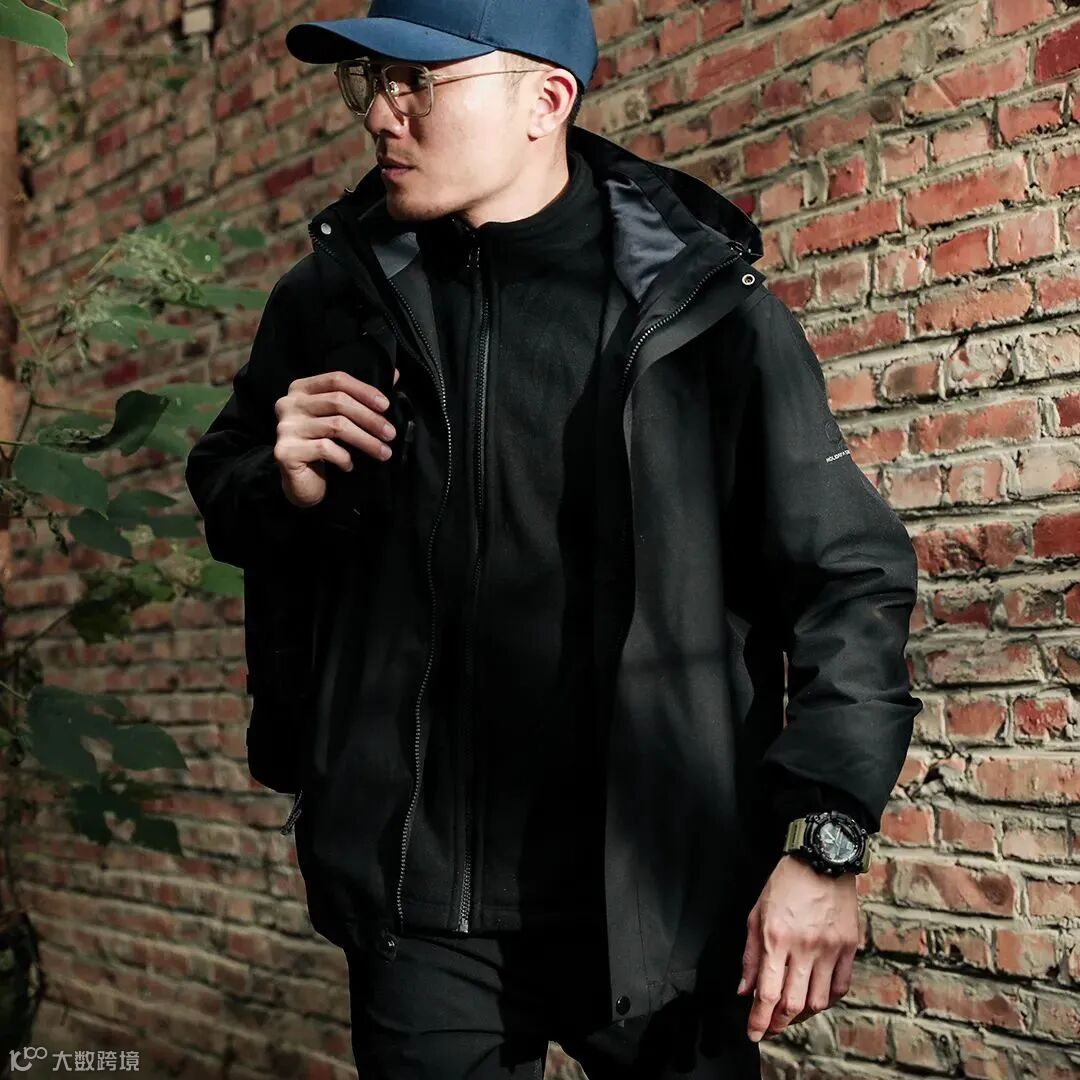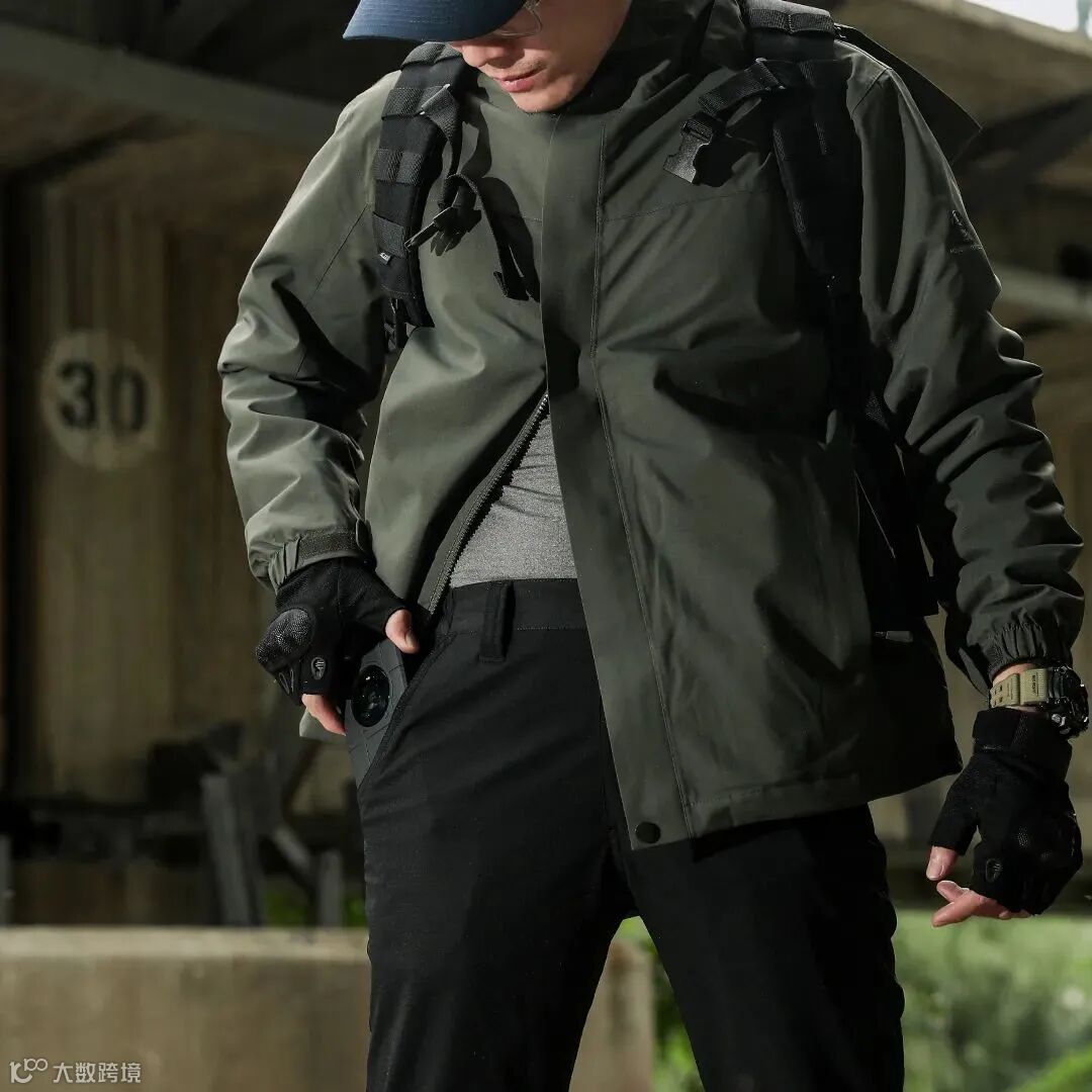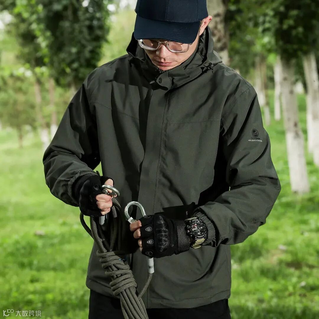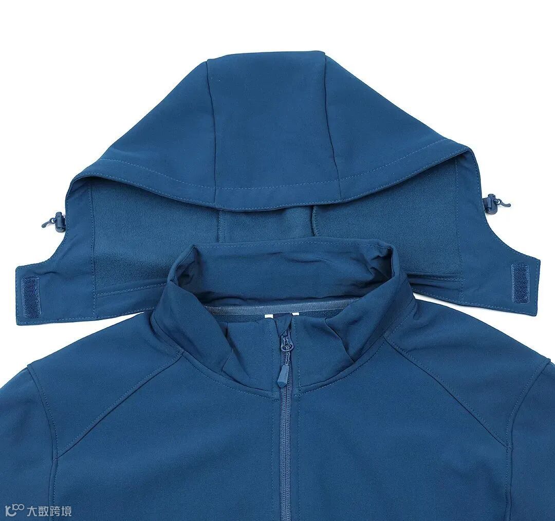 冲锋衣在帽子和下摆处都做了调节扣设计,