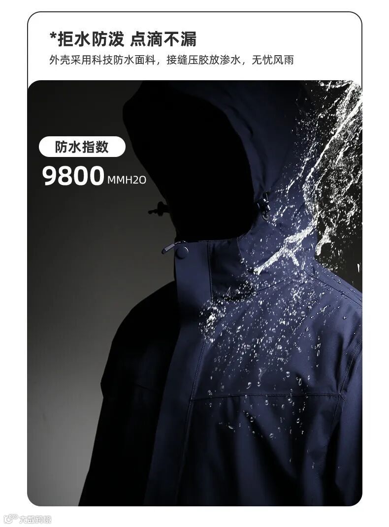 于是,在这件冲锋衣上采用了常用的复合面料,