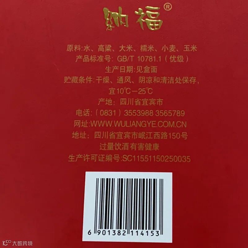 五粮液纳福的产品标准号是:GB/T10781.1(优级),这正是纯粮食酿造的标志,也就是老百姓常说的好酒。