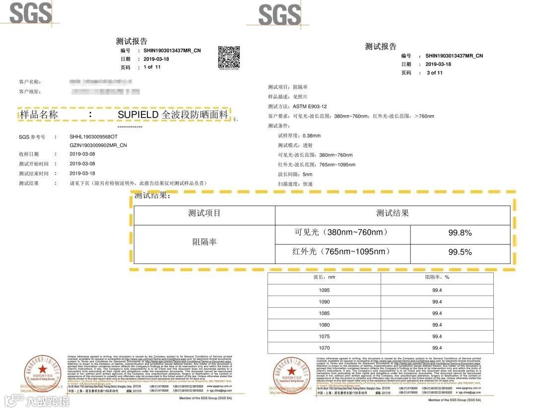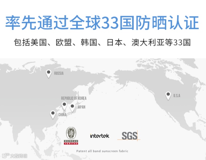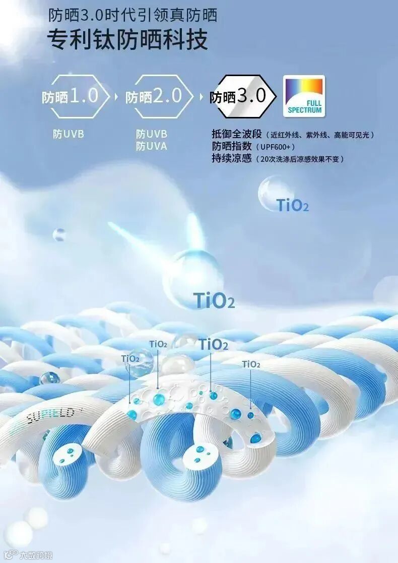 2、全波段防晒专利面料,预防UVA、UVB、红外线,防止晒伤、晒黑、光老化。